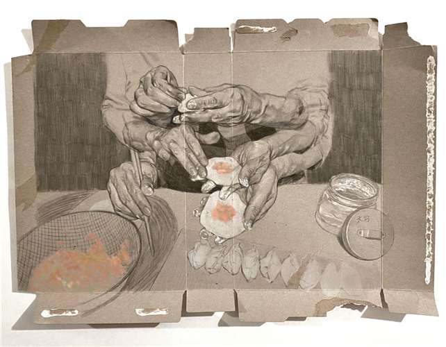 Lucy Pan, My Mother’s Dumplings, Drawing & Illustration. Grade 12, Lord Byng Secondary School, Vancouver, BC. Joohyun Pyune and Richard Moninski, Educators. Gold Medalist.